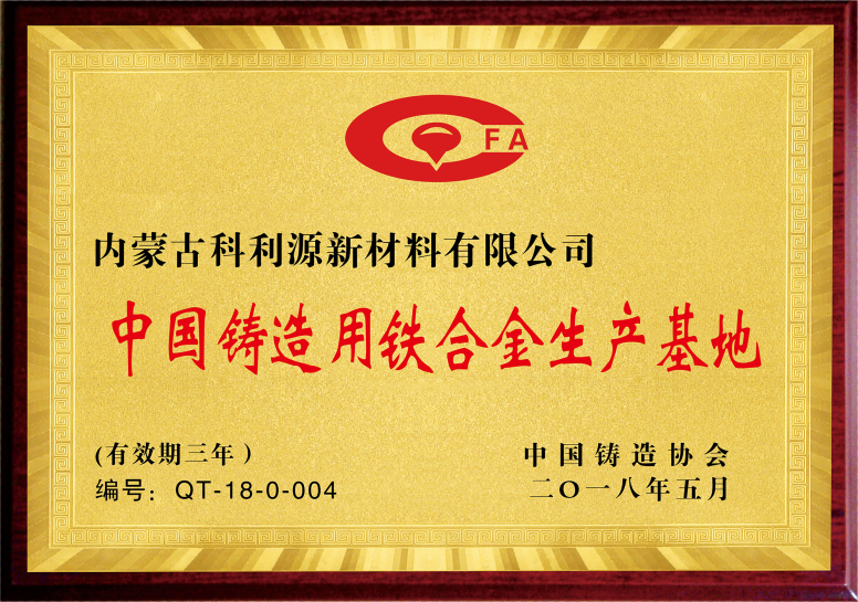 我公司位于矿产资源富集区、上游原料企业集中之地。距白云鄂博稀土矿仅180KM,被中国铸造协会授予铸造用原材料基地称号。